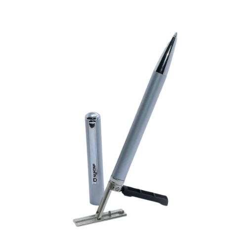 CANETA CARIMBO METAL CLASSICA NYKON PRATEADA PLACA TEXTO RETANGULAR 08X32MM