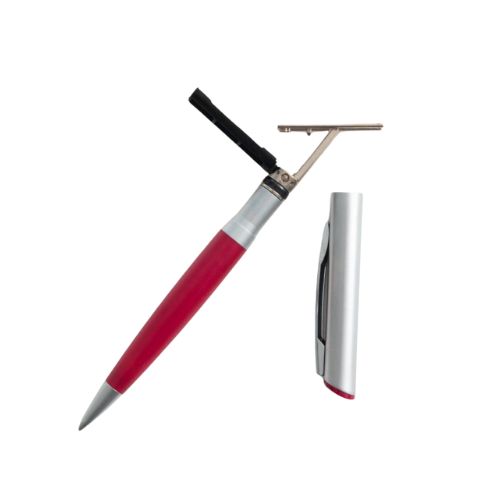 CANETA CARIMBO METAL DIAGONAL COLOR NYKON VERMELHA PLACA TEXTO RETANGULAR 08X32MM